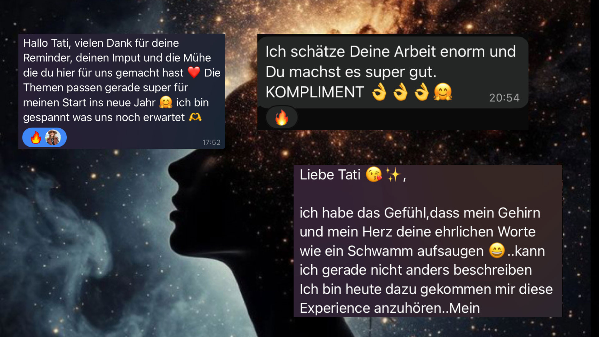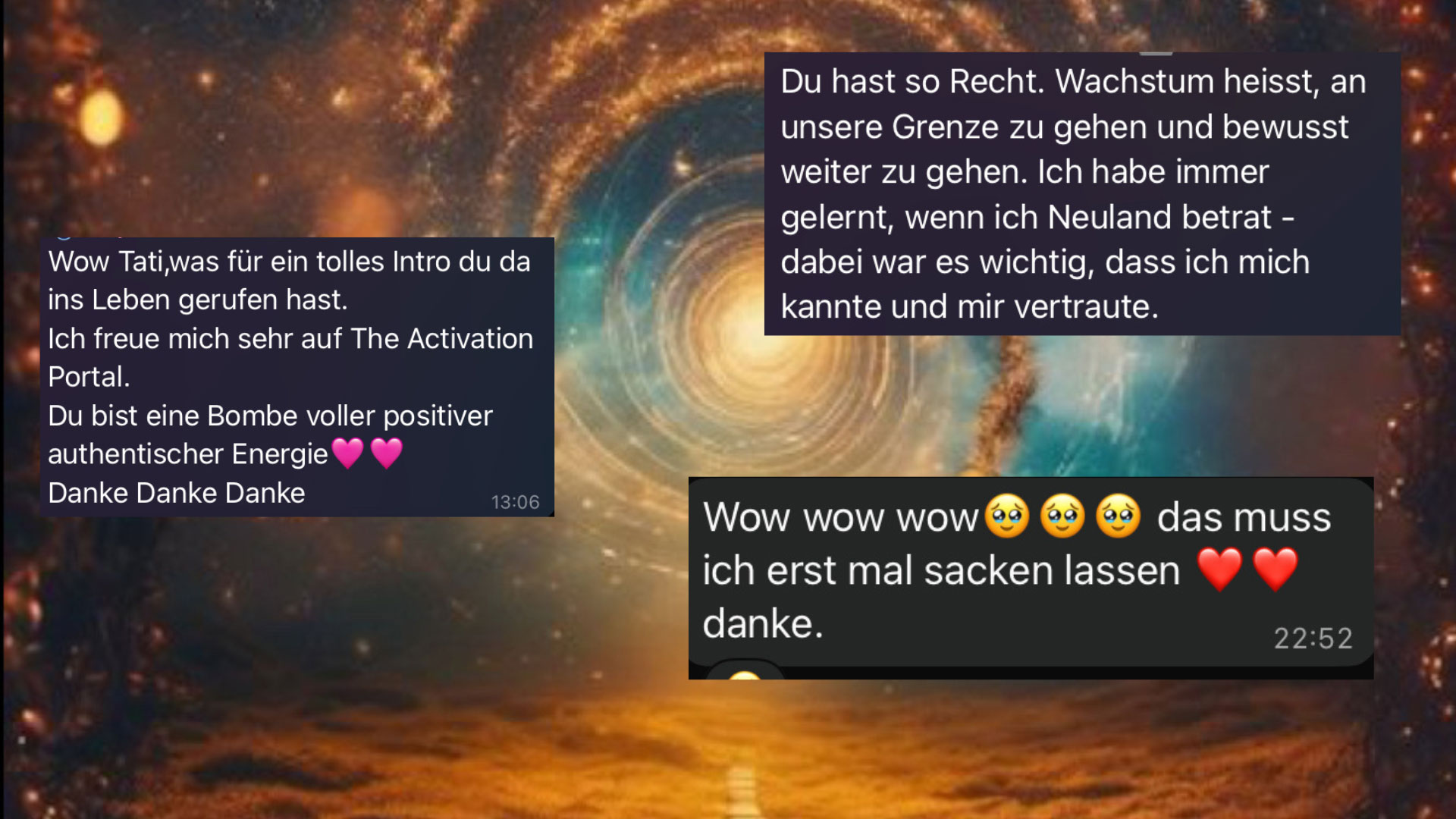 Das Activation Portal ist eine bewusst & visuell geführte Telegram Audio Experience, die dich in deinem eigenen Tempo, mit ruhiger und präsenter Stimme, über mehrere Wochen begleitet. Du wirst durch meditative, spirituelle & visuelle Einheiten in deinen inneren Kosmos geführt und gleichzeitig mit klarem Mindset, Real Talkpersönlichen Erfahrungen und radikal ehrlicher Herzarbeit konfrontiert. Das Portal aktiviert deine Intuition, deine innere Freiheit, schenkt dir geistige und seelische Klarheit, damit du mutiger, authentischer und selbstermächtigter im echten Leben klarer entscheidest und wirksamer handelst.